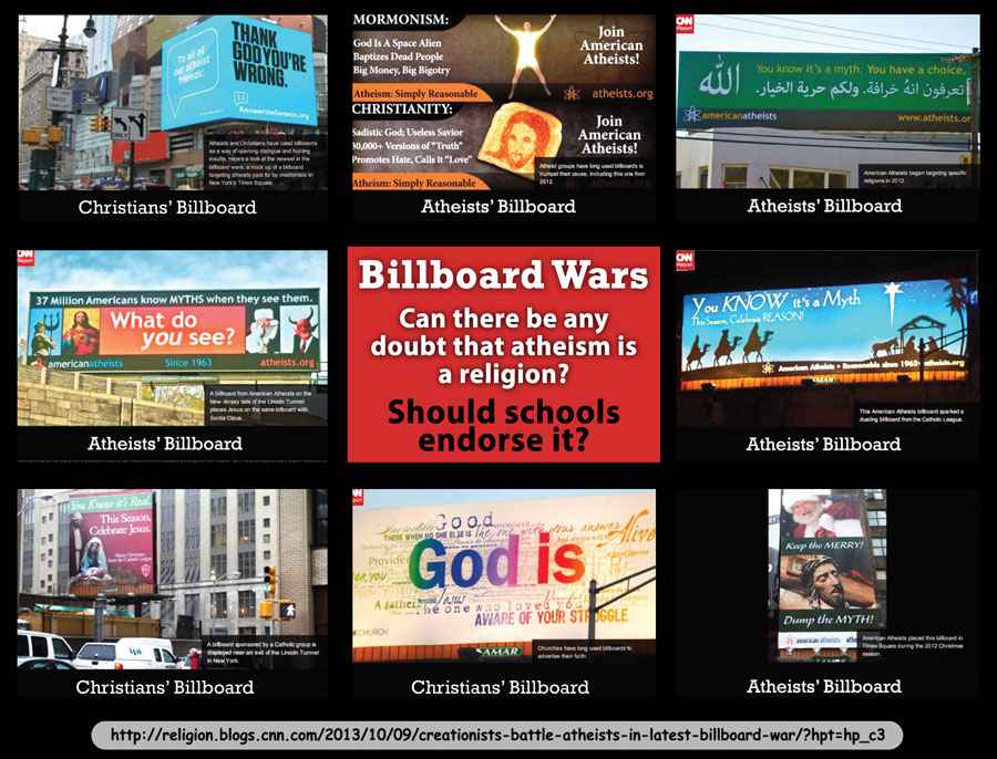 U.S. courts have ruled that public school subjects that touch on religion must be (a) omitted from the curriculum or (b) presented objectively so that the effect is religiously neutral. COPE believes that many subjects taught in public education routinely address controversial religious questions in a manner that promotes only one of competing religious viewpoints. This tends to indoctrinate rather than objectively educate with a religiously neutral effect [Epperson v. Arkansas (1968)]. COPE is particularly concerned with curricula that systematically exclude theistic views while teaching only atheistic perspectives.